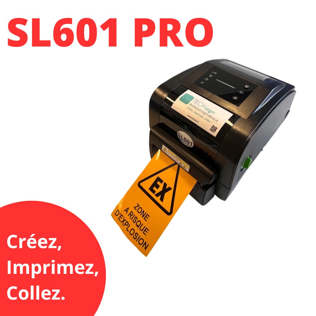 Facile d'utilisation et avec sa haute résolution d'impression, la nouvelle imprimante signalétique SL601 PRO saura répondre aux exigences les plus élevées en matière de signalétique variée. Elle sera votre allié dans la création de vos panneaux de sécurité, repérage matériel et stocks, tuyauteries, substances chimiques, bâtiements ou encore pour votre signalétique personnalisée.